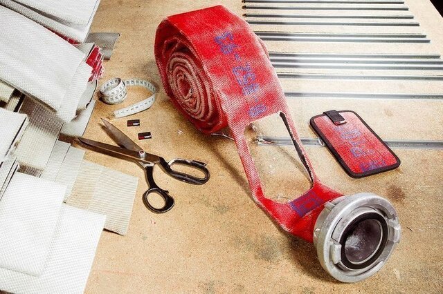 Jedes Produkt besteht aus echtem, gebrauchten Feuerwehrschlauch – mit individuellen Spuren, Aufdrucken und Strukturen aus vergangenen Einsätzen. Dadurch ist jedes Stück ein echtes Unikat.