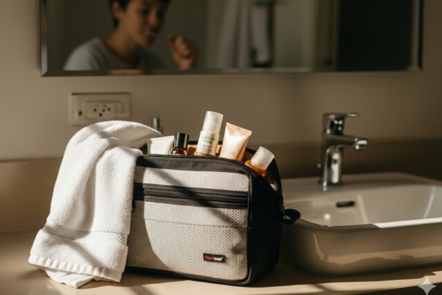 Für Zahnbürste, Shampoo, Rasierer und alles, was unterwegs nicht fehlen darf – kompakt, organisiert, bereit für jedes Abenteuer.