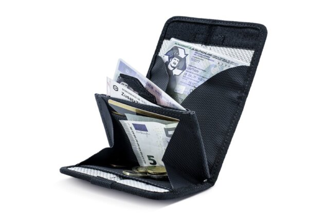 Scheine, Karten und Kleingeld sind getrennt organisiert.