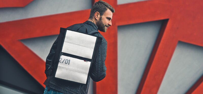 Aus echtem Feuerwehrschlauch. Mit Platz für Laptop, Unterlagen und alles, was du täglich brauchst.