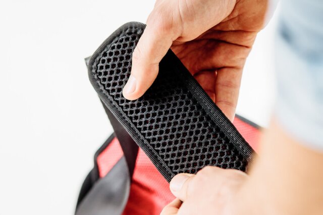Das gepolsterte Schulterpolster verteilt das Gewicht gleichmäßig. So sitzt Gordon stabil und bequem – auch wenn er voll beladen ist.